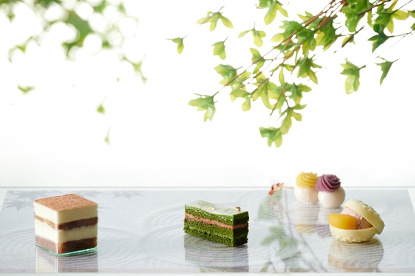 大きな窓から緑あふれる日本風庭園を眺めながら、パティシエが贈る和洋折衷のアフタヌーンティースイーツをご堪能ください。