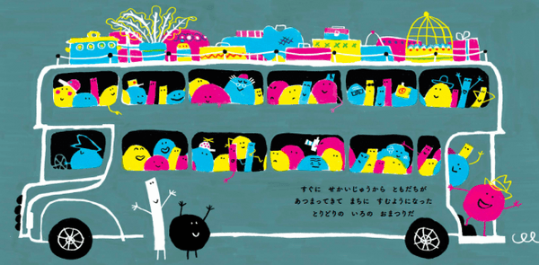 「せん」と「てん」の異なる「かたち」が出会い、遊びからはじまり、いろいろなものを作り始め、「いろ」づいていきます。お互いを受け入れ、そして、新しい発見が生まれること。共に生きることの大切さを描く作品です。子どもはもちろん、大人にも気づきを与えてくれます。