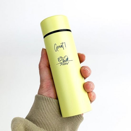 大人っぽさも感じる、シャイニーなグレーのポケトルです。テーブルシリーズのスヌーピーデザインがシンプルで、男女共に使いやすいボトルですよね。