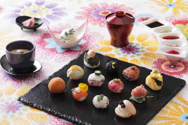 四季折々の美しい自然があふれる八事に佇むストリングスホテル 八事 NAGOYAで、和洋会席ご膳の新メニューが登場。夏に旬を迎える鱧の湯引きや和牛肉炙りなど料理長が厳選した食材と、名古屋名物ひつまぶし・海老天むすをイメージした一品など、12種類の手毬寿しで優美な“十二単”を表現。お醤油は、料理に深みを与える独特な旨味とコクが特徴の“伊勢醤油”を使用。“もみじおろし”や“食べるラー油”など4種類の薬味は、手毬寿しをお好みのテイストに変えて味わえます。茶わん蒸し・赤出汁・デザートも、最後の一口まで堪能いただけるよう考案。昼はご膳、夜は天婦羅が味わえる会席のコースをご用意。また名古屋ならではの手毬寿しをおうちで楽しめるお弁当も販売いたします。
