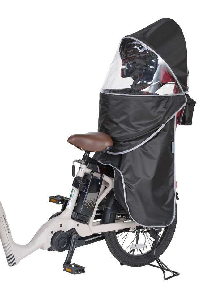 雨天・防寒・日よけ・乗り降りの4つのシーンに対応。自転車用チャイルドシート「グランディア」専用レインカバー新発売