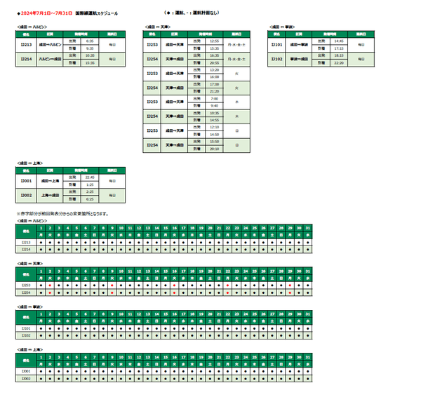 なお、今回の増便により、7月は天津線を毎日運航します。