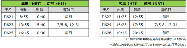 ◆成田=広島線