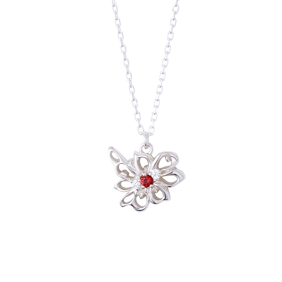 印象的な“ドロドロ”をモチーフにしたトップに3石のストーンをセット。中心のストーンには赤いカラーストーンをセットしました。