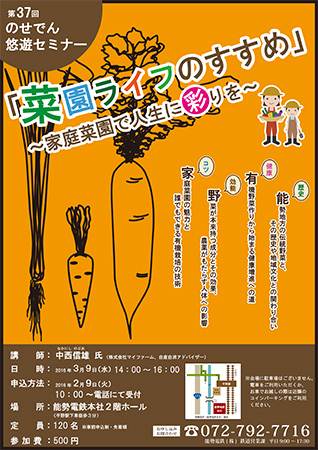 第37回「のせでん悠遊セミナー」を開催します 「菜園(さいえん)ライフのすすめ」 ~家庭菜園で人生に彩(いろど)りを~