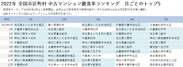 • 2022年の月別ランキングに2回以上ランクインした市区で、首都圏以外の市区は「兵庫県神戸市垂水区」のみだった。