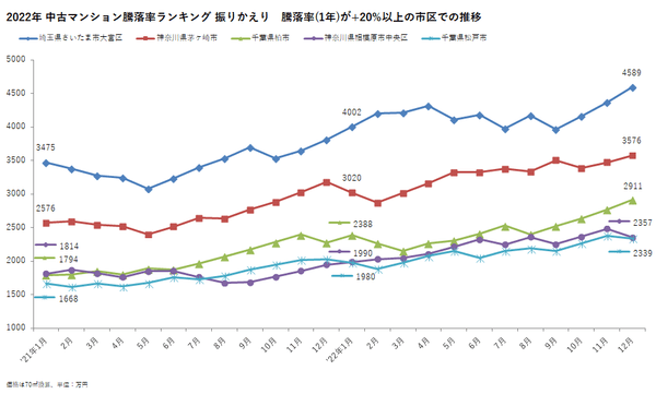 「マンションレビュー」のプレスリリースで注目エリアの1年を振りかえり! 全国市区町村 中古マンション騰落率ランキング 2022年の上位市区の相場を調査