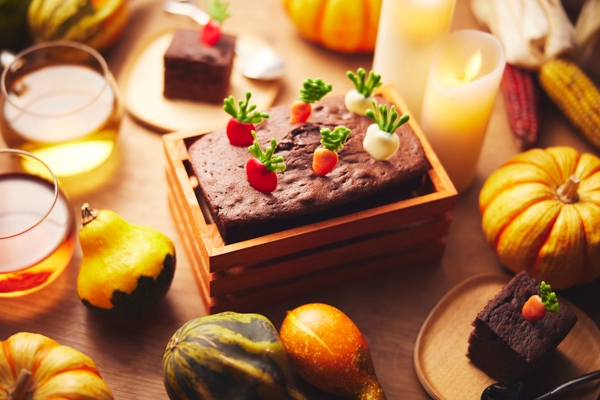 温室「グリーンハウス」では、収穫を祝うハロウィンティーパーティーセットを用意しています。かかしに扮したスタッフに合言葉の「Trick or Treat」を唱えると、イベント開催期間限定で用意している「畑ケーキ」や本イベント用にブレンドした「オリジナルティー」を受け取ることができます。グリーンハウス内や客室など、お好きな場所で楽しめます。