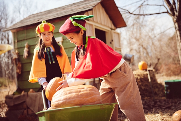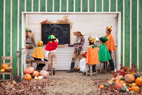 野菜を育てている当リゾートの農園「アグリガーデン」には、イベント期間中、ハロウィン仕様の「かぼちゃ畑」が広がり、実際のかぼちゃに触れることができます。また、かぼちゃや茄子・ブロッコリーなど、「野菜」に仮装できる衣装も用意。小さな野菜・大きな野菜のどちらも用意するため、子供から大人まで、仮装をして野菜になりきり、本イベントを楽しめます。温室「グリーンハウス」内に、マルシェをイメージしたフォトスポットがあり、本物の野菜とともにカゴに入り、野菜になった気分で撮影することができます。