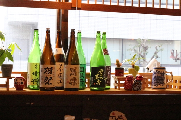 日本酒や焼酎はもちろんのこと、酎ハイやカクテルなど飲みやすいアルコールメニューもそろっています。特に日本酒の種類が豊富で、全国各地から厳選した珍しい日本酒もいただけます。