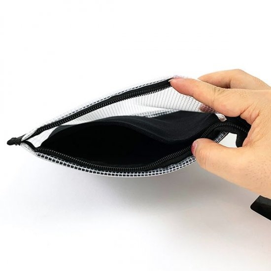 見せてもいいものはメッシュ側に入れましょう。メッシュの透け感がありつつ見せたくないものは、隠せるいいとこどりのポーチなんですよ♪