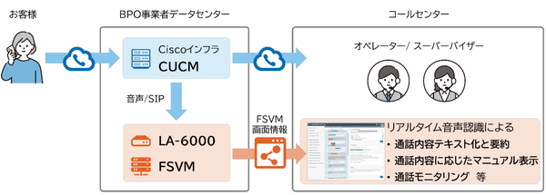 海外事業の強化を図るNTTテクノクロスでは、米国BPO事業者が活用するCUCMにFSVMを連携させることがコールセンター業務のDX推進に繋がるものと捉え、ネクストジェンの音声収録及びキャプチャーシステム「LA-6000」*2を組み合わせ、CUCMとFSVMとの連携機能を開発しました。これにより、CUCMを活用しているコールセンター事業者は、FSVMによるリアルタイム音声認識を活かし応対品質を向上させ、顧客満足度を高めるとともに、業務負荷軽減により生産性向上を図ることができます。