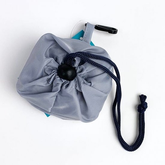 もちろん、巾着付きです。エコバッグに合わせて、巾着もグレー。このままバッグインしておけば、急にコンビニなどのショップに立ち寄っても安心ですね。