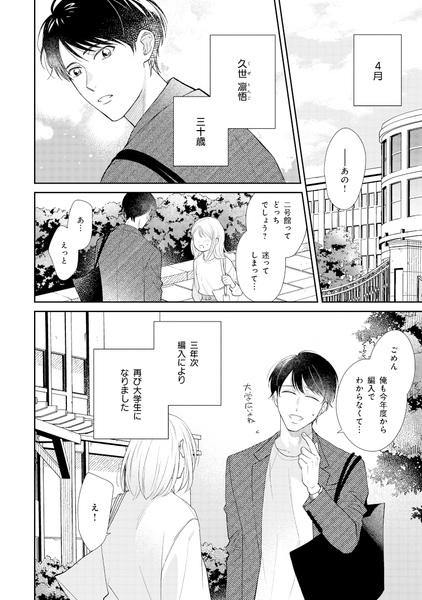 ブラック企業で働き追い込まれた自分のキャリアを見つめなおすため、三年次編入により二度目の大学生活を送ることにした久世凛悟、30歳。