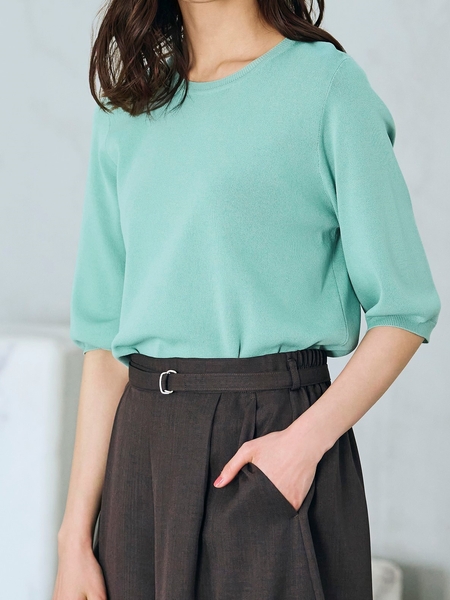 昨年よりご好評の「やわらかドライタッチニット」は、 『マシンウォッシャブル』『接触冷感』『UVケア』『毛玉になりにくい』4つの機能性を兼ね備えたデイリーユースに活躍する優秀アイテムです。