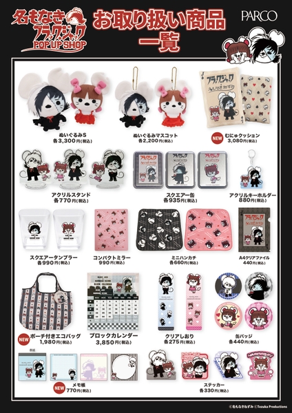 「名もなきブラック・ジャック POP UP SHOP」の開催にあたって、「名もなきブラック・ジャック」「名もなきねずみ」「ブラック・ジャック」の商品を一堂に集めて販売いたします。
