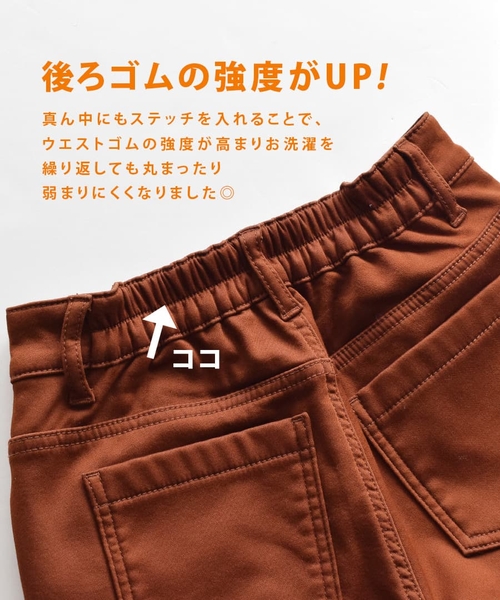 また、生地の伸縮性以外にもウエストの後ろ側のゴムの部分の真ん中にステッチを加えており、お洗濯を繰り返してもはき心地が変わらないような改良を加えました。