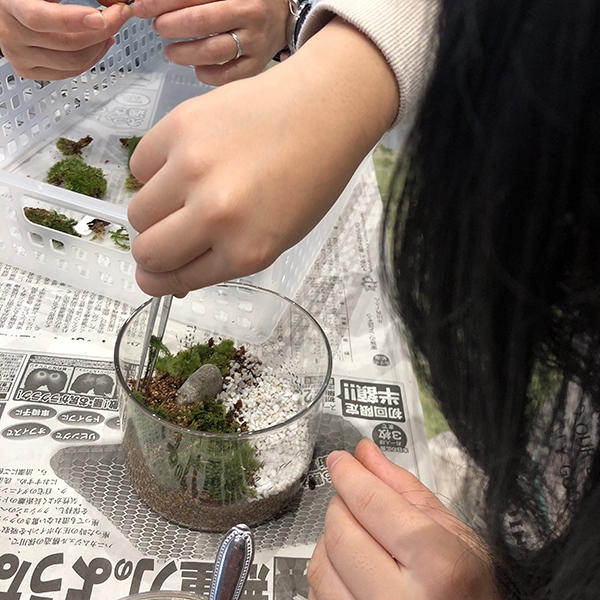それぞれの個性を発揮しながら苔テラリウムを作る