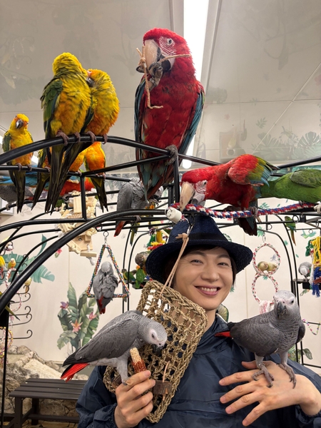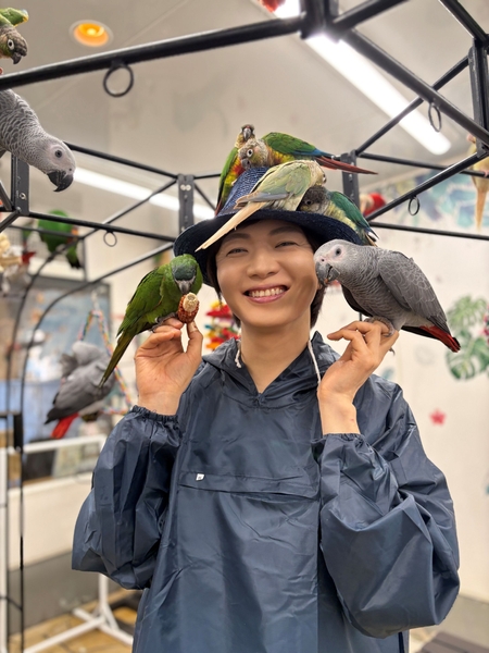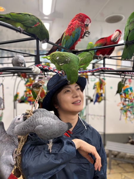 羽ばたく準備完了! 歌手・竹島 宏、新曲『小夜啼鳥(サヨナキドリ)の片思い』のリリースを記念して“鳥のいるカフェ”に訪問。無数の鳥に囲まれ歓喜!