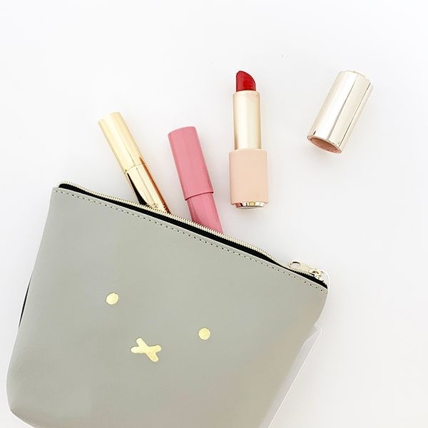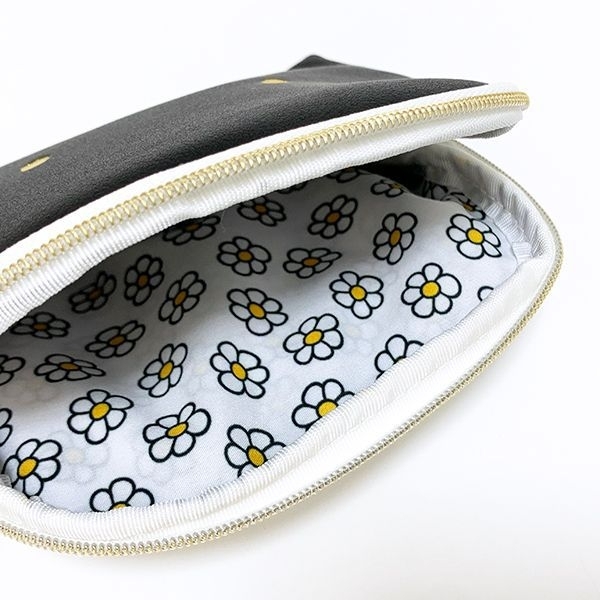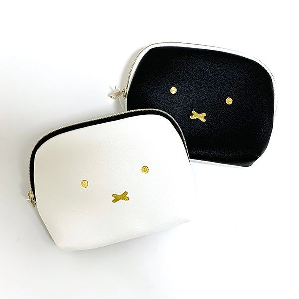 なぜかお澄まし顔に見えるコスメポーチ。ホワイトとグレーの2色。