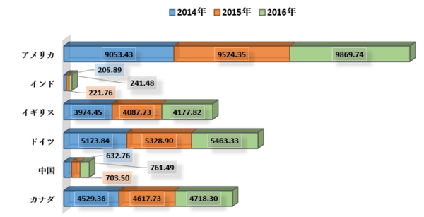 一人当たりの医療費、PPP(米ドル)– 2014-2016年