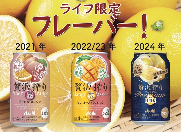 2021年からご好評をいただいているコラボチューハイ。「ピーチ&オレンジ」、「マンゴー&パッション」が甘いフレーバーでしたので、今回はさわやかですっきりとした香りが夏にぴったりの”日向夏”を選びました。また、第4弾は初めての「贅沢搾り“プレミアム”」。ちょっと良いことがあった日や、頑張った自分へのご褒美にお楽しみいただきたいと思います。毎年売り切れてしまう限定フレーバー、ぜひお早めにお試しください。