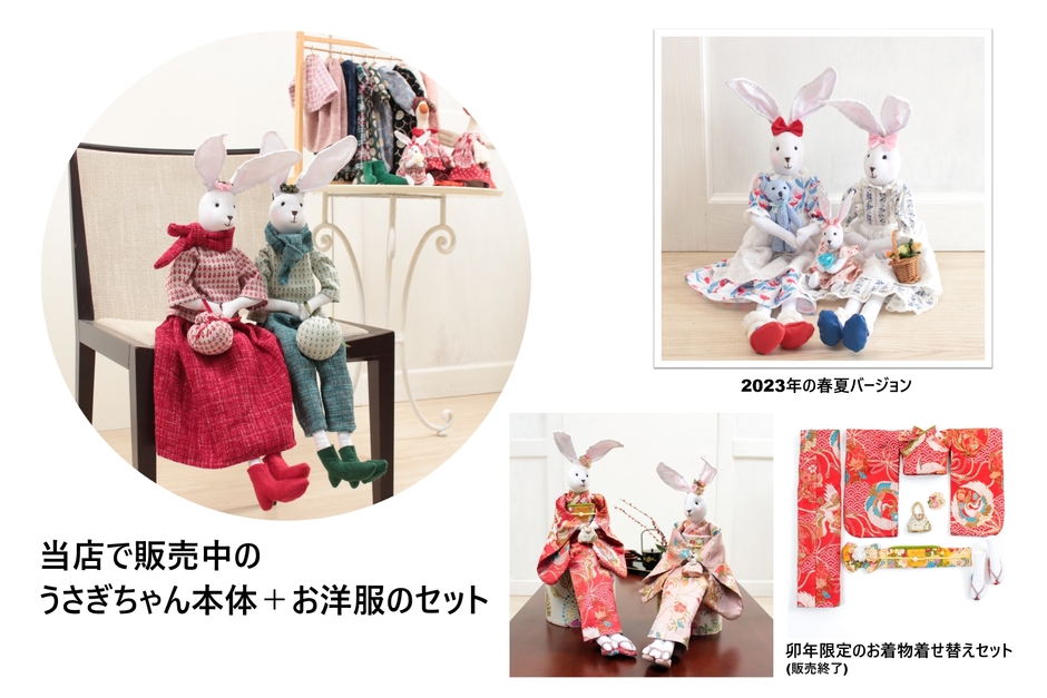 株式会社クレイブが運営するインテリアショップ「アミブルージュ」で販売されているぬいぐるみです。従来型は着せ替えが出来る仕様となっており、当店ではうさぎちゃん専用のトップスやスカート、バッグや帽子など可愛らしいミニチュアアイテムを取り揃えております。