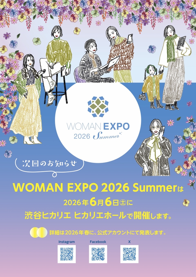 次回、「WOMAN EXPO 2026 Summer」の開催が渋谷ヒカリエ・ヒカリエホールにて2026年6月6日(土)に決定しました。詳細は2026年春に、公式アカウントにて発表となります。