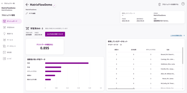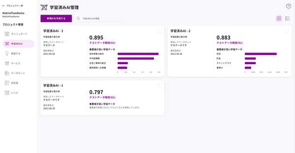 従来のMatrixFlowでは、需要予測や退職者予測などの異なる目標を持ったAIをひとまとめでしか管理することができませんでしたが、これからはAIで実現したい目標ごとに、プロジェクトを作成し、より目標達成に注力しやすくなりました。