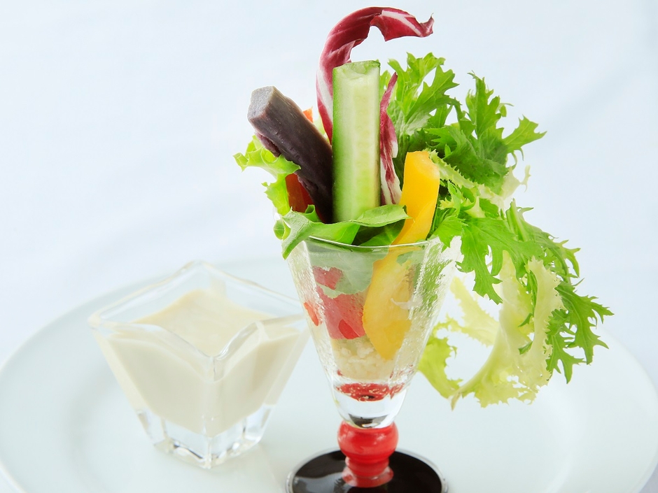 お食事は高原野菜のバーニャカウダや牧場チーズリゾットなど那須高原らしさを感じられるディナーをご用意。