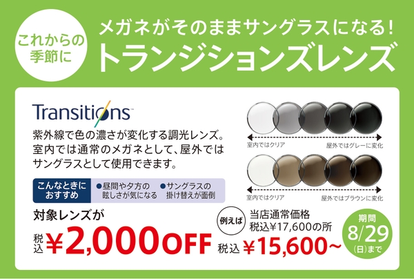 ■トランジションズ 期間限定 ¥2,000 OFF! ※8月29日(日)まで