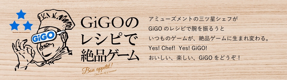 コンセプトワード「GiGOのレシピで絶品ゲーム」は、凄腕のシェフが独自のレシピで腕を振るうと、定番の料理も絶品に生まれ変わる様を「GiGOのレシピ=コラボレーションや企画」で、定番のアーケードゲームが「絶品ゲーム=スーパー野田ゲーGiGO・BREAKING DOWN ハードパンチャー ARCADE」に生まれ変わる様子を表現して言います。GiGOのレシピで絶品になったゲームの数々を会場でご堪能ください。