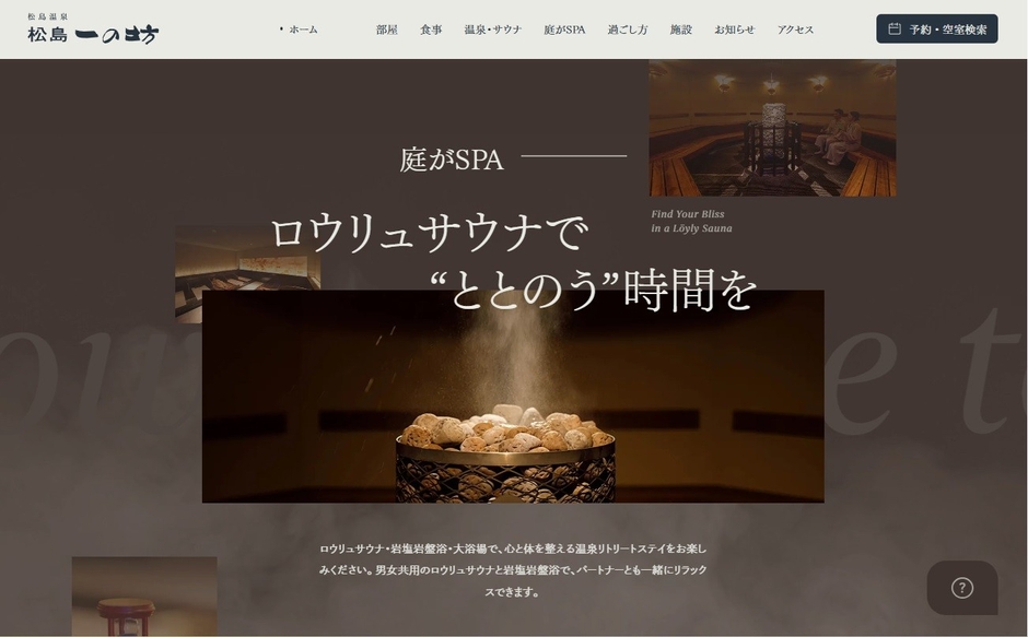 松島という観光地にありながら、ゆったりと滞在をするお客様が多い「松島一の坊」では、空室検索や宿泊予約だけでなく、お客様が「こんな過ごし方をしよう」とイメージが膨らむWEBサイトを目指しました。