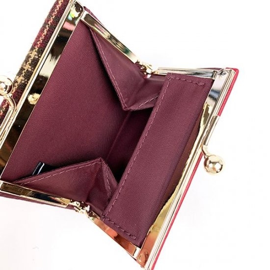 深い赤が秋冬らしさ満載の、2つ折りのパスケースです。ベージュの入り具合も絶妙なタータンチェックで、暖かみのある起毛素材にも惹かれます。