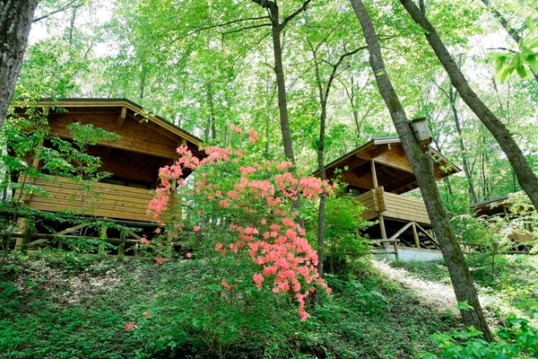 約100棟あるコテージは森の中に建てられていて、大自然の中で四季を感じられます。