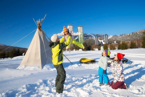 含まれるもの:スキーレッスンとレッスン中のリフト券、スキーのギアとウェアのフルレンタル、キッズスノーモービル、大雪原スノーモービル(2人乗り)、スノーラフティング、そり遊び