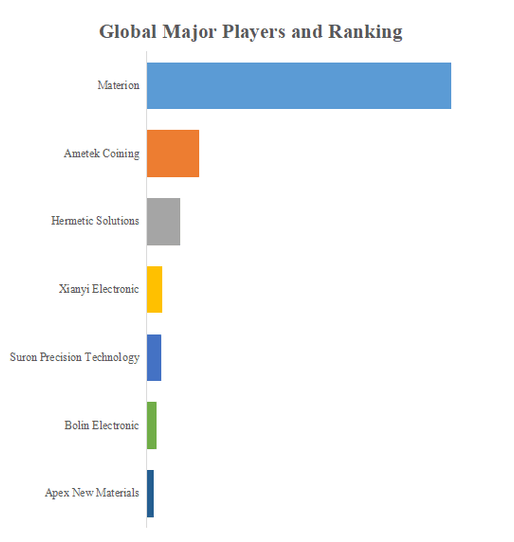 YHResearchのトップ企業研究センターによると、プリセットAuSnシール蓋の世界的な主要製造業者には、Materion、Ametek Coining、Hermetic Solutions、Xianyi Electronic、Suron Precision Technologyなどが含まれている。2023年、世界のトップ3企業は売上の観点から約77.0%の市場シェアを持っていた。