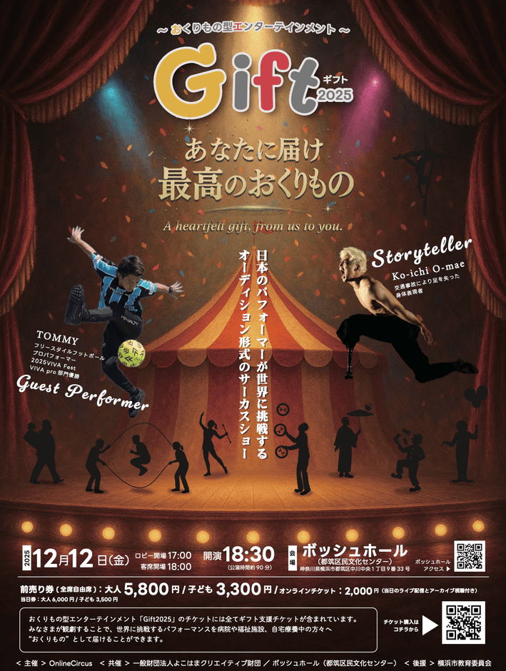 「OnlineCircus」(代表:吉川泰昭/ラスベガス)は、2025年12月12日(金)、横浜市都筑区のボッシュホール(都筑区民文化センター)にて、ラスベガスの国際サーカス大会「VIVA Fest」の日本代表を選出する公式選考公演「Gift2025」を開催します。