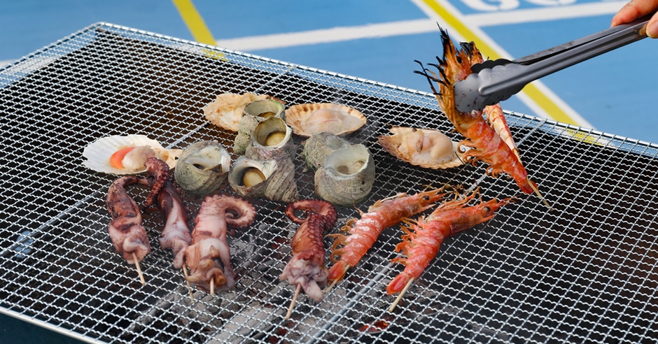 ④ 海を眺めながら楽しむ「セルフ浜焼き」