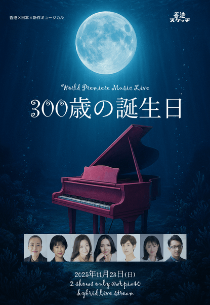 香港スケッチ実行委員会主催、『300歳の誕生日・新曲お披露目ライブ』が2025年11月23日 (日・祝)にAPIA40(東京都目黒区碑文谷5丁目6-9 B1F)にて開催されます。