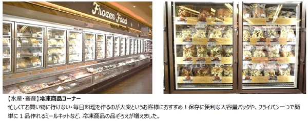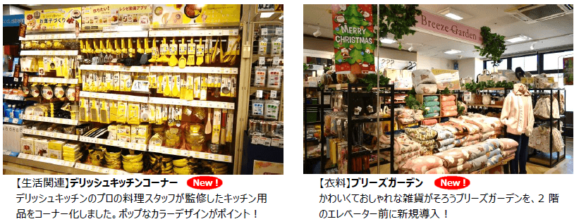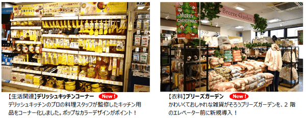 この度の改装で酒と冷凍食品コーナーを2階に移設し、食品の品ぞろえを拡充いたしました。さらに、健康志向の方におすすめの体に優しい商品を取りそろえた「ビオラルコーナー」を新設するなど魅力ある商品を多数取りそろえ、幅広いお客様にご満足いただけるお店を実現いたします。