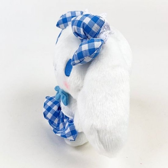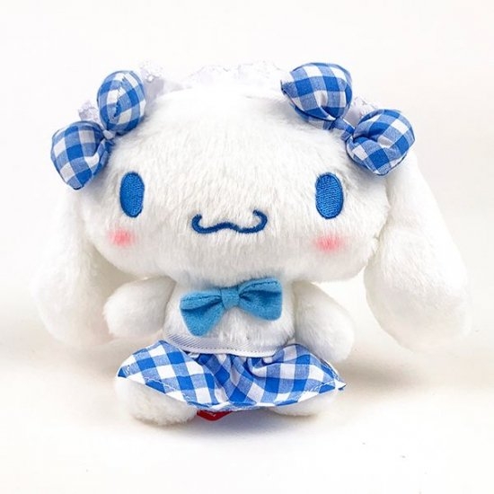 ブルーのギンガムチェックがとっても爽やかで、シナモロールによく似合っています。両耳についたお揃いのリボンもかわいいですよね。