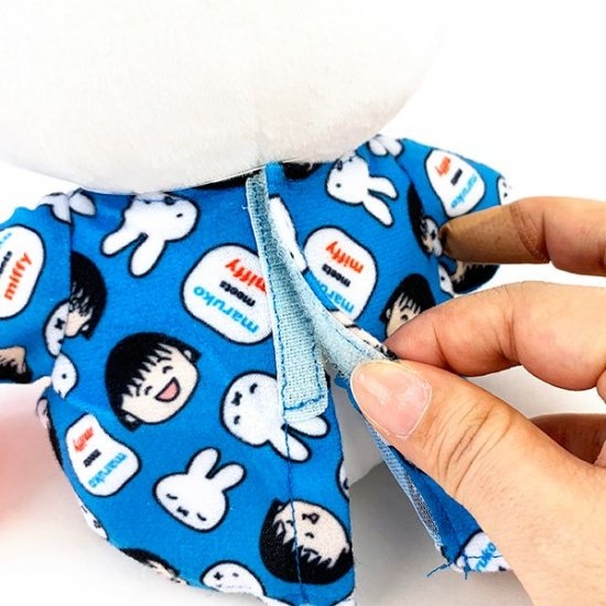 お洋服はマジックテープで開閉できます。いろいろな表情のまるちゃんやミッフィーがいて、思わず見入ってしまいます。