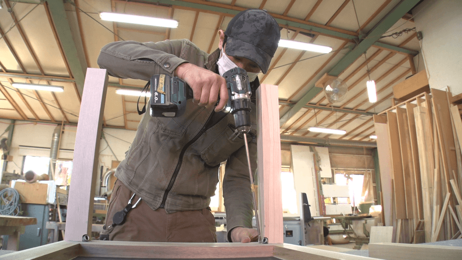 埼玉県の家具工房で働く家具職人の安藤さん。リメイクを行うのは、依頼者が1990年にNYで手に入れたというテーブル。娘さんとの思い出がたくさん詰まっていることと、デザインが気に入っているため、壊れて使えなくなってから15年経っても大切に保管していたのだそう。