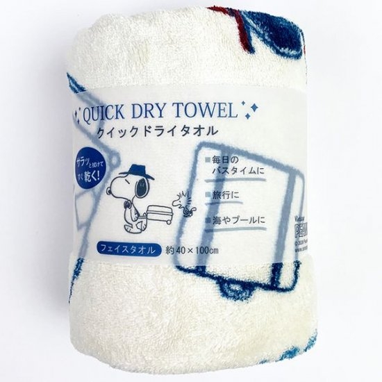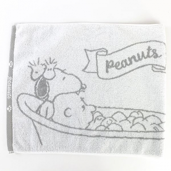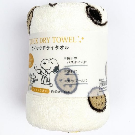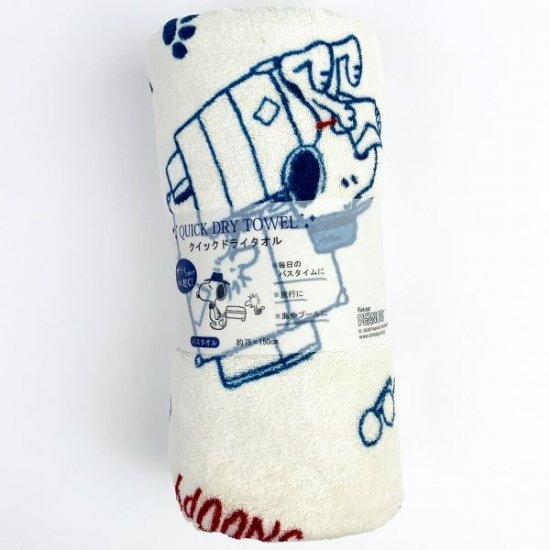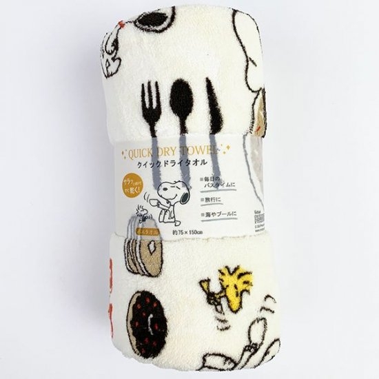 バスタイムに大活躍の、スヌーピーデザインの速乾タオルです。