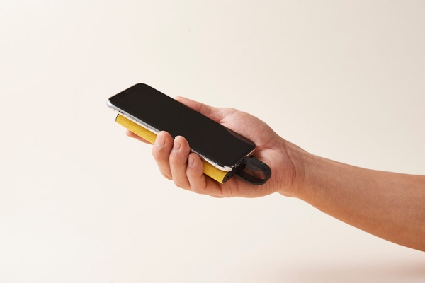 6,000mAhの大容量でありながら、わずか14mmの薄さで鞄やポケットにすっきりと収まります。また、充電の際にはケーブルが余ることなく、スマートフォンと重ねて一緒に持ち歩くのにも快適なサイズです。