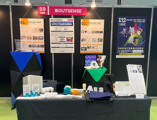 株式会社OUTSENSE(東京都大田区)は、大田区産業プラザPiOにて開催された「大田区加工技術展示商談会2024」に出展いたしました。弊社ブースでは、日本の伝統技術である『折り紙』の文化を工学分野に応用した『折り工学』に関する設計・材料・製造のノウハウを活かした、製品開発や研究開発、立体装飾品製造のサービスをご紹介いたしました。