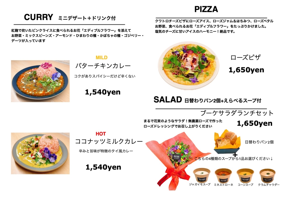これらは全てバラ専門店カフェだからこその“フラワーローズ”をテーマとしたメニューです。