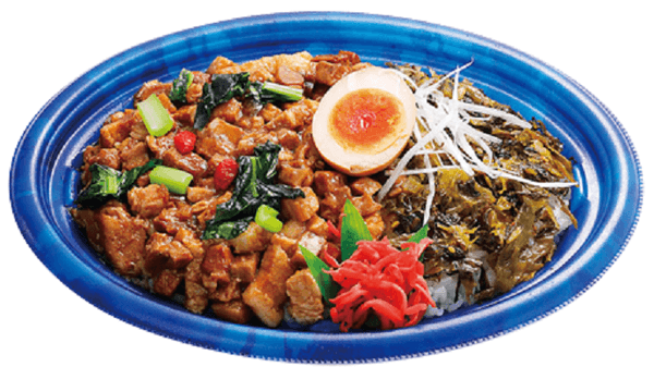 中国特二級厨師監修のもと、スパイスの「八角」「花椒」でバランスよく味を調え、本場さながらの味を再現しました。豚肉とタレの濃い味の口直しとして高菜を合わせ、日本人の好みにも合うように調整しました。