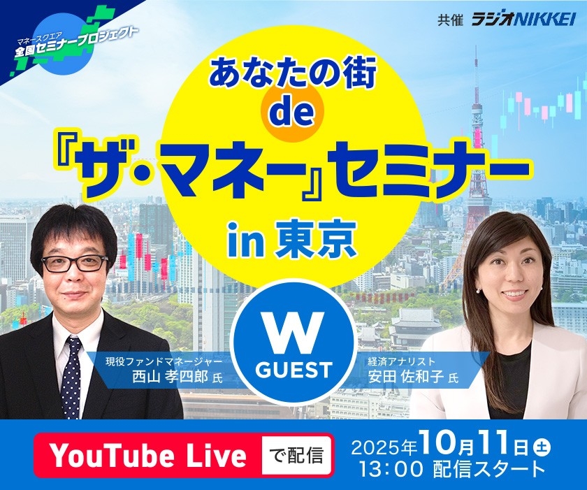 「毎日が財産になる」をコーポレートスローガンに、中長期的な資産形成環境を提供する株式会社マネースクエア(本社:東京都港区、代表取締役会長兼社長:相葉 斉、以下「当社」)は、明日2025年10月11日(土)13:00からラジオNIKKEI共催のWEBセミナーを開催いたしますので、お知らせいたします。